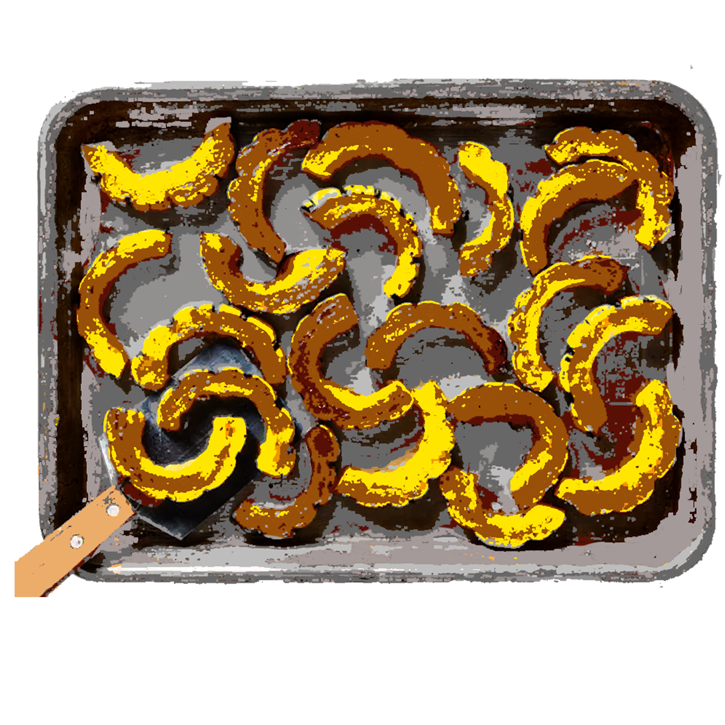 After combining squash with onion and pears Spread mixture in a single layer on prepared baking sheet.